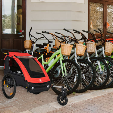 Explore the scenic coastline with ease by renting a beach cruiser equipped with a Burley kid trailer, perfect for a family-friendly biking adventure.